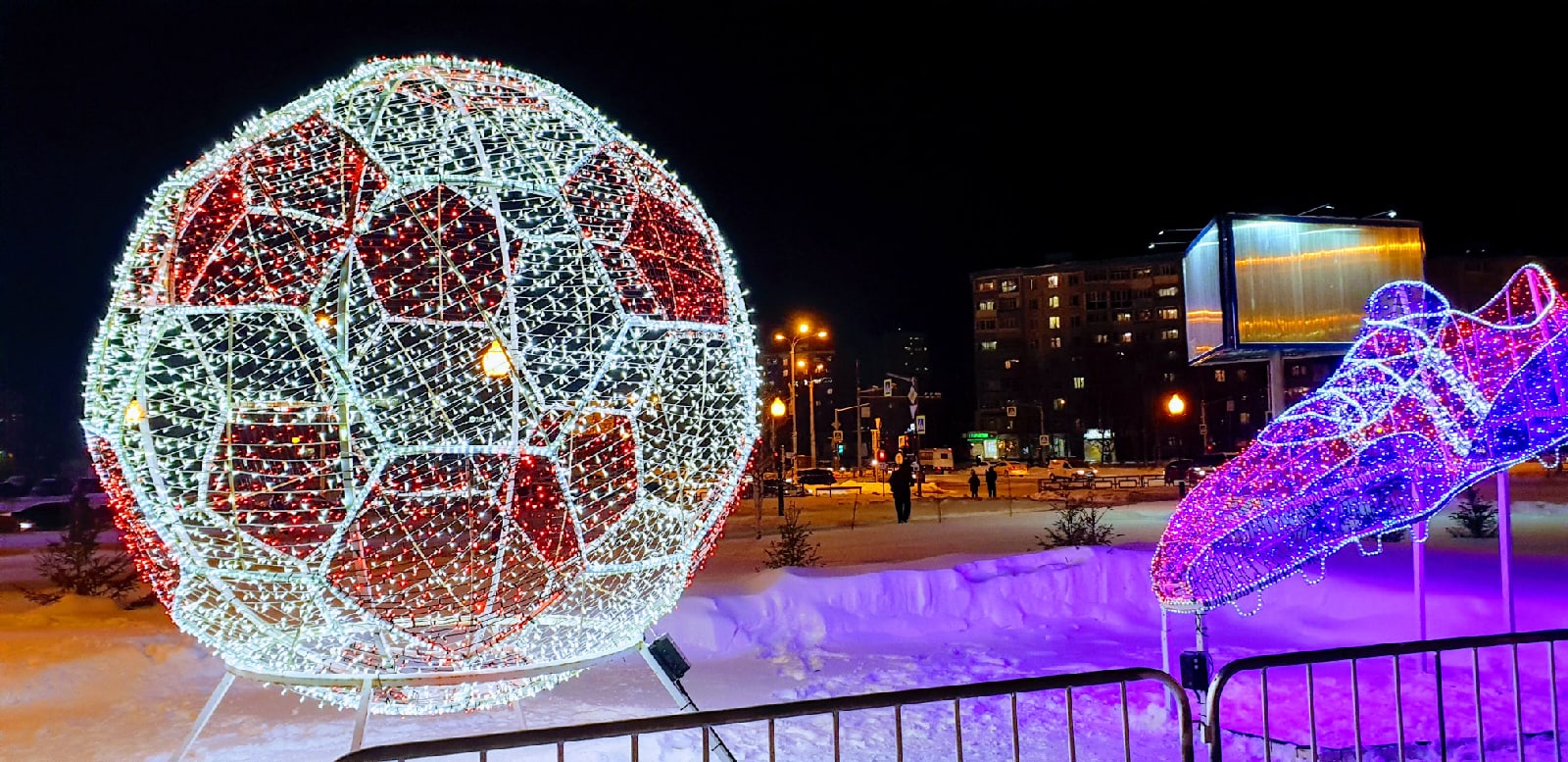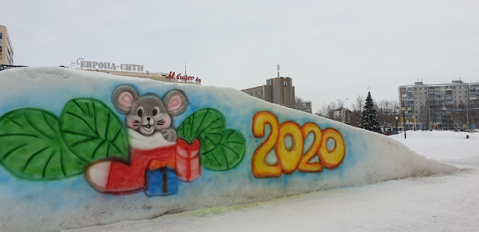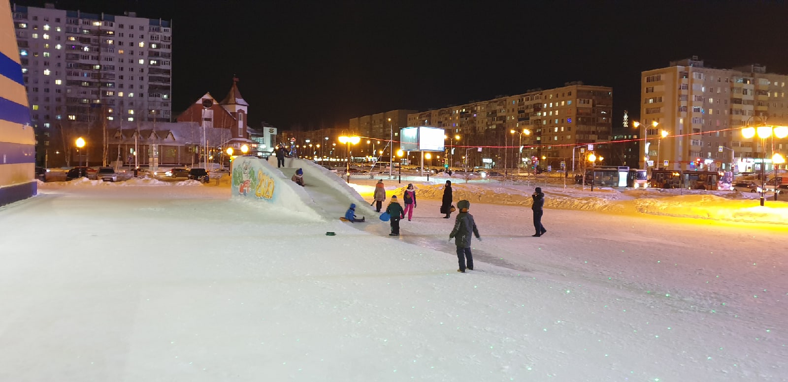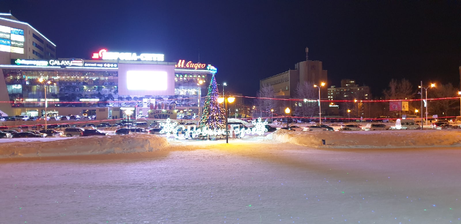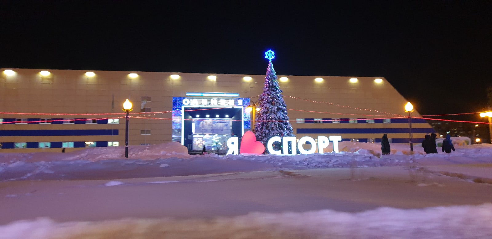 В уходящем 2019 году спортивно-оздоровительный комплекс «Олимпия» украсили необычным образом, фасад комплекса оформлен путем использования светодиодных установок, сеток из гирлянд, гибкого неона, световых фигур и надписей, также построена снежная горка для детей.