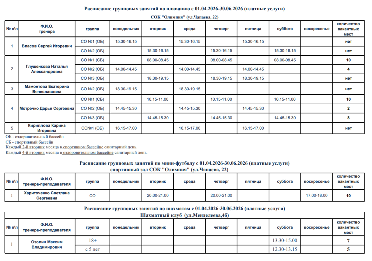 ВНИМАНИЕ! РОДИТЕЛИ (ЗАКОННЫЕ ПРЕДСТАВИТЕЛИ)! Приём электронных заявок на платные групповые занятия по плаванию, мини-футболу, шахматам осуществляется по ссылке https://forms.yandex.ru/u/69c0e789e010dbe276cb6713