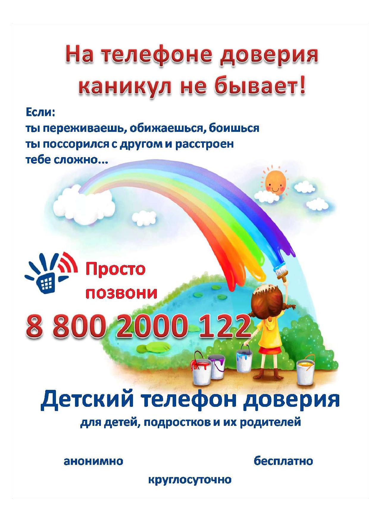 Дети, как и взрослые, звонят и советуются, как лучше поступить. Но многие ребята думают, что звонить можно только в школьный период. Однако телефон доверия работает круглосуточно, 24 часа, 7 дней в неделю, без перерыва на обед и летние каникулы.