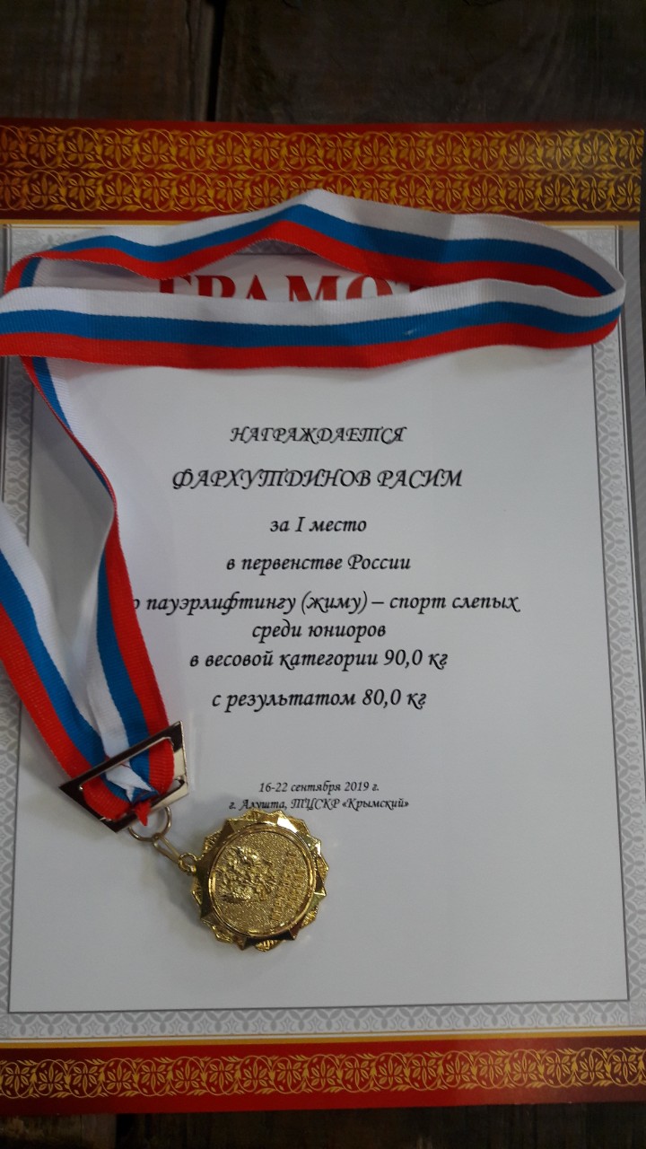 В чемпионате России по пауэрлифтингу (жим) спорта слепых команда ХМАО-Югры заняла 1 место, в составе которой выступали спортсмены МАУ г. Нижневартовска "СШ" Фаррахов Азат и Фархутдинов Расим.