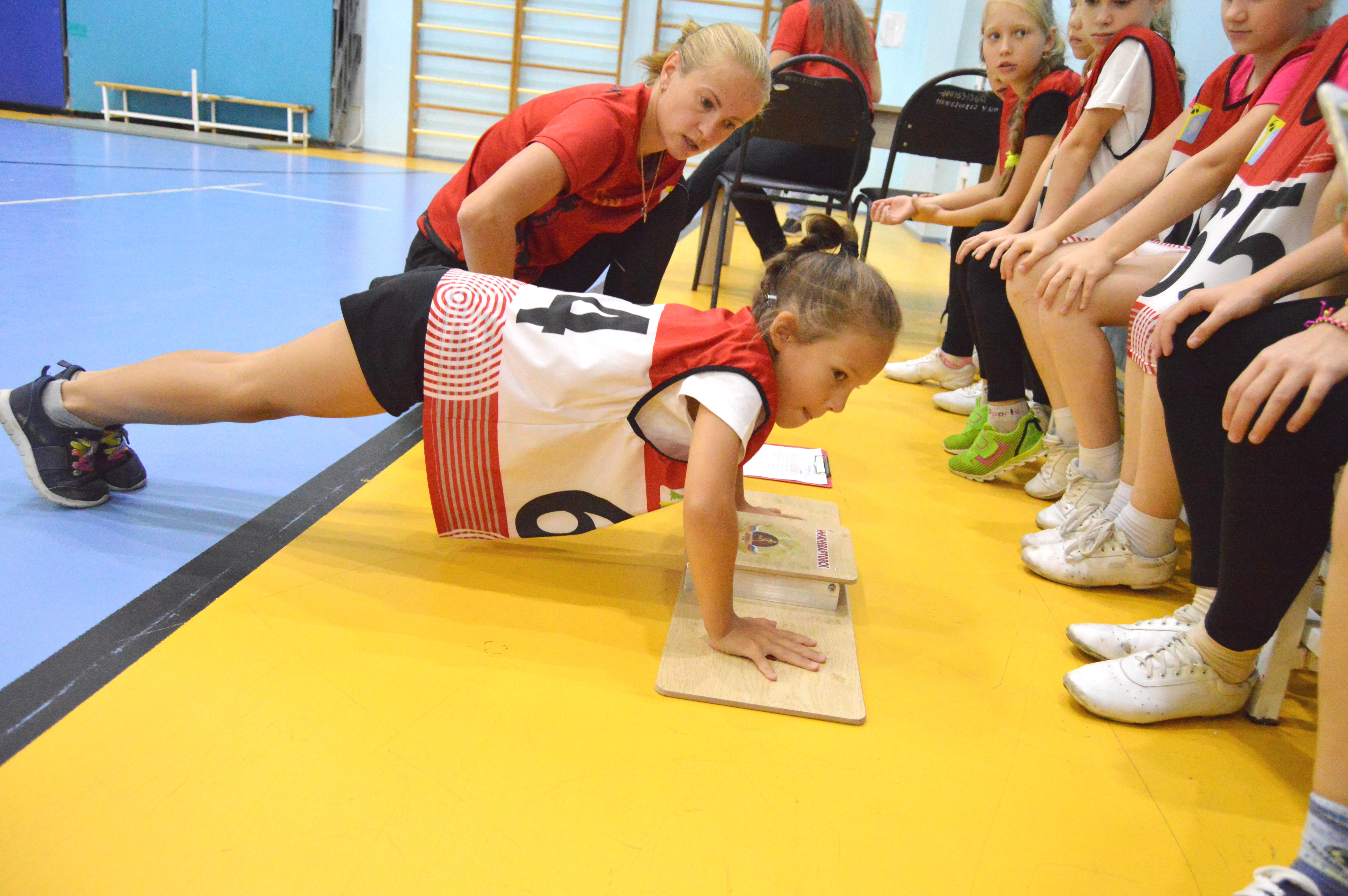 Дети сдали нормативы по прыжкам в длину с места, наклонам вперёд из положения стоя на гимнастической скамье,...
